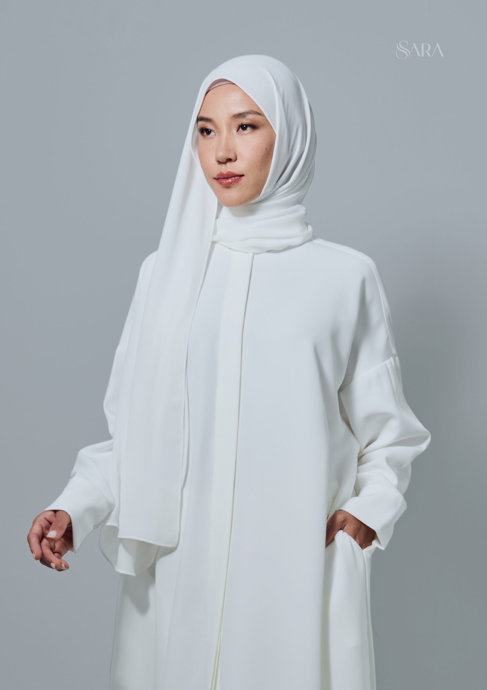 Crafted from premium Korean chiffon, Aira Half-moon Shawl offers a perfect balance of elegance and comfort. Lightweight yet durable, it drapes beautifully with a flowy finish that stays in place throughout the day.