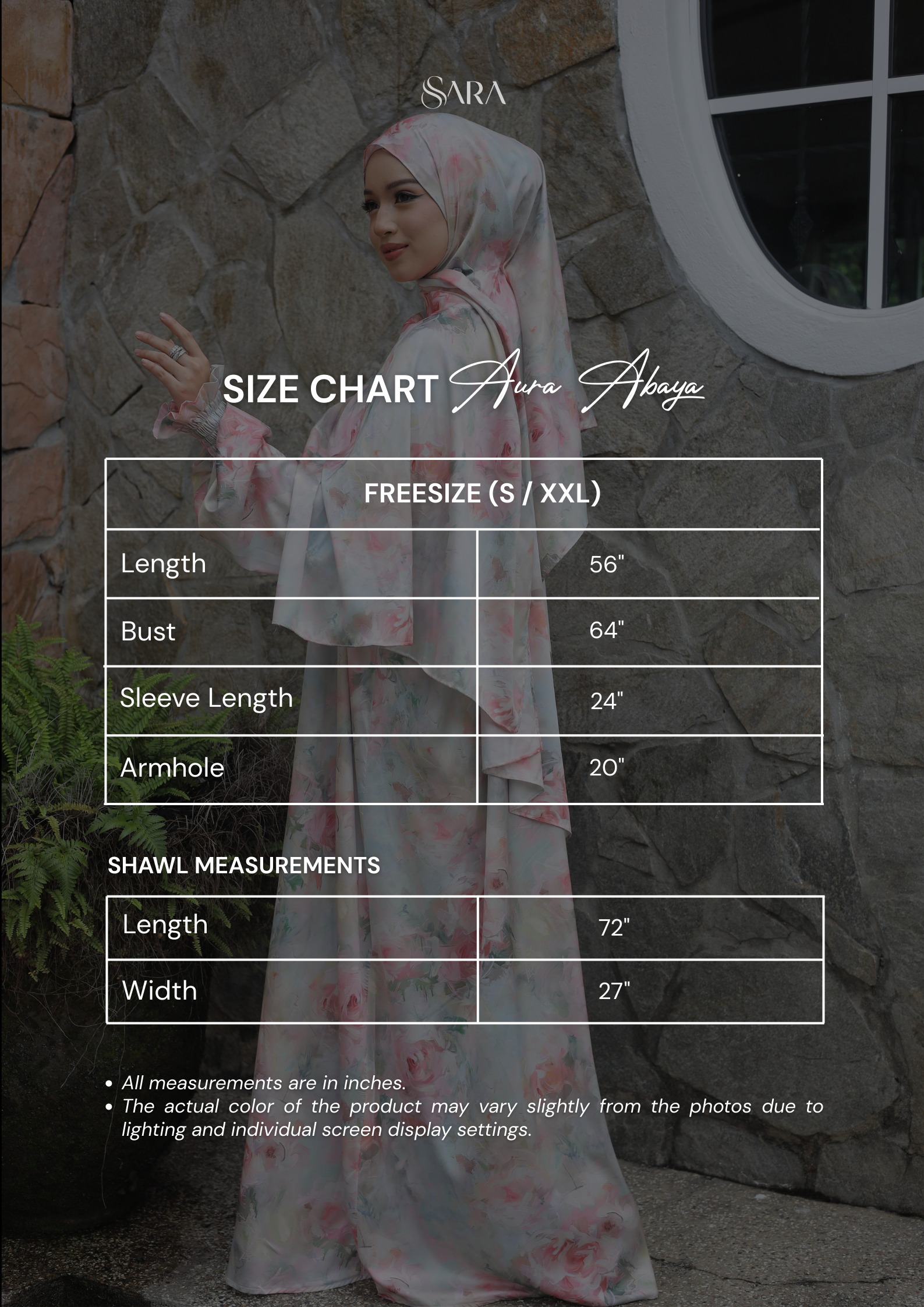 SIZE CHART AURA ABAYA
