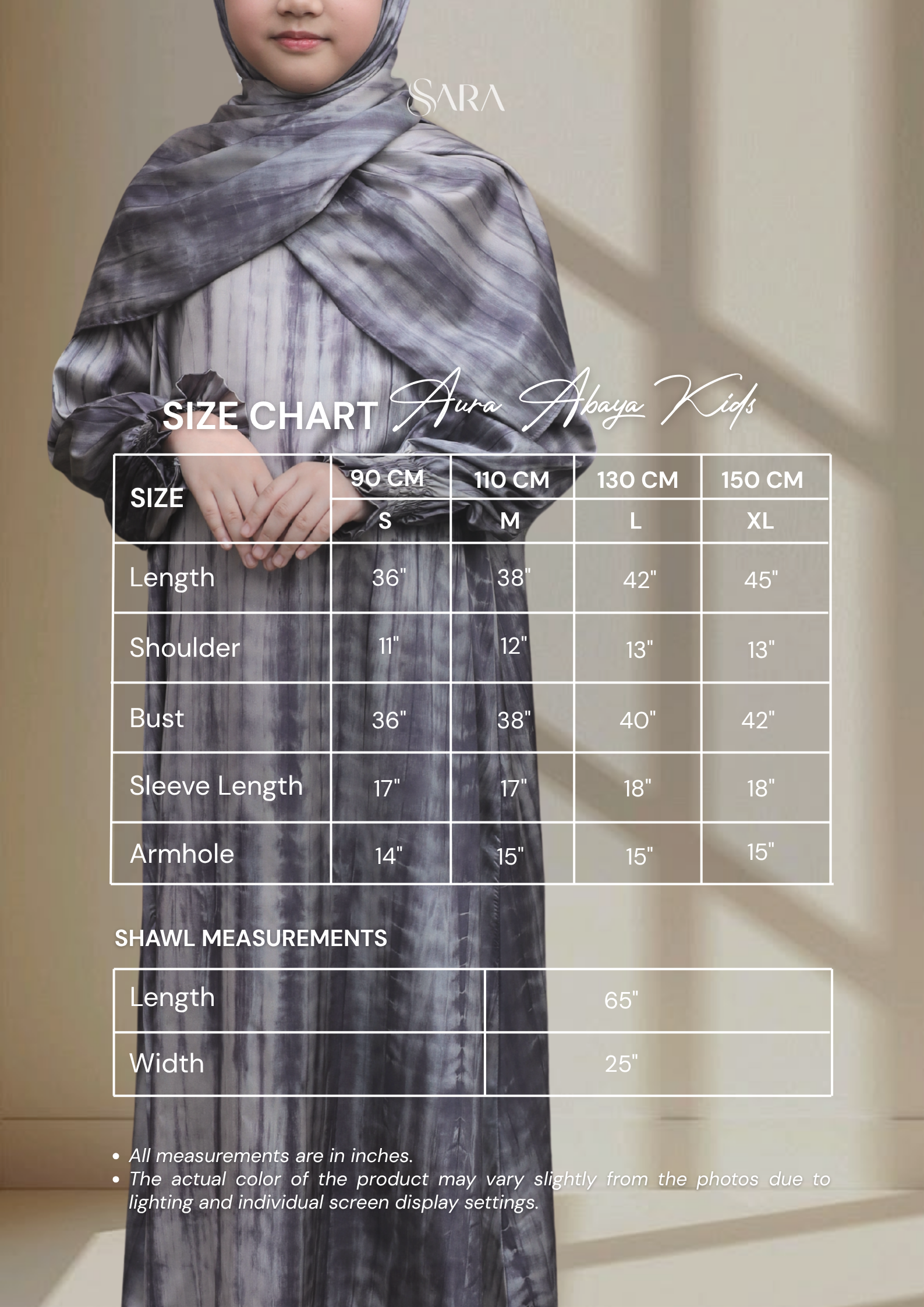 SIZE CHART AURA ABAYA KIDS