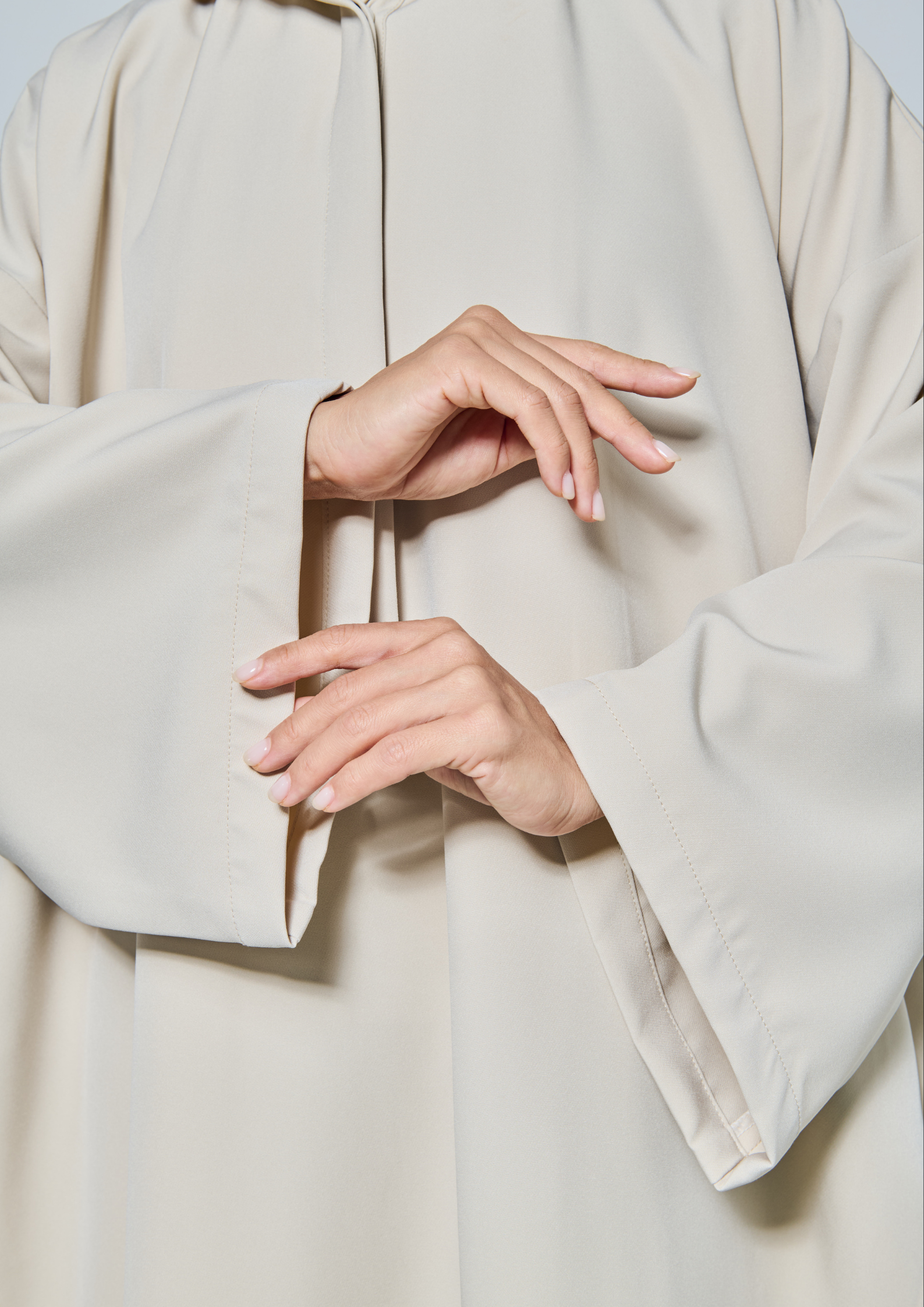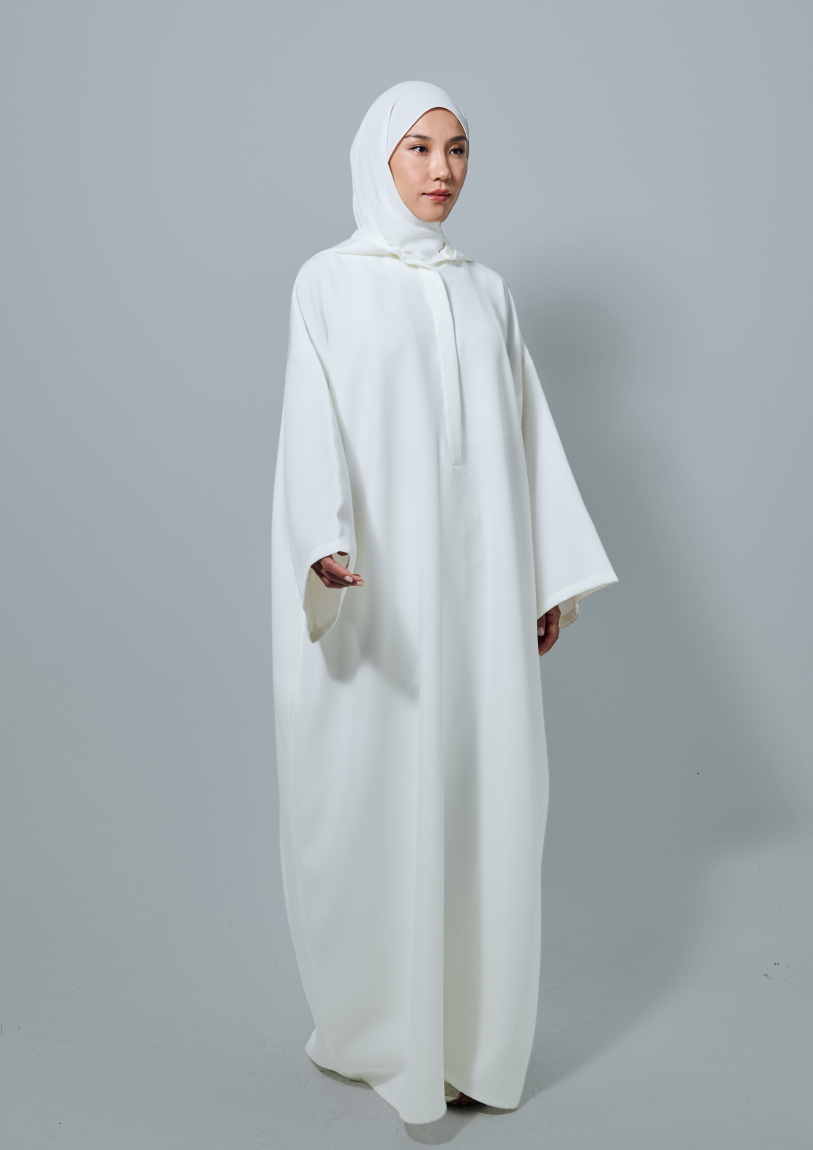 - To ensure optimal coverage and prevent transparency, we recommend wearing an inner layer underneath the Lira Hoodie Jubah in code White and Creme.