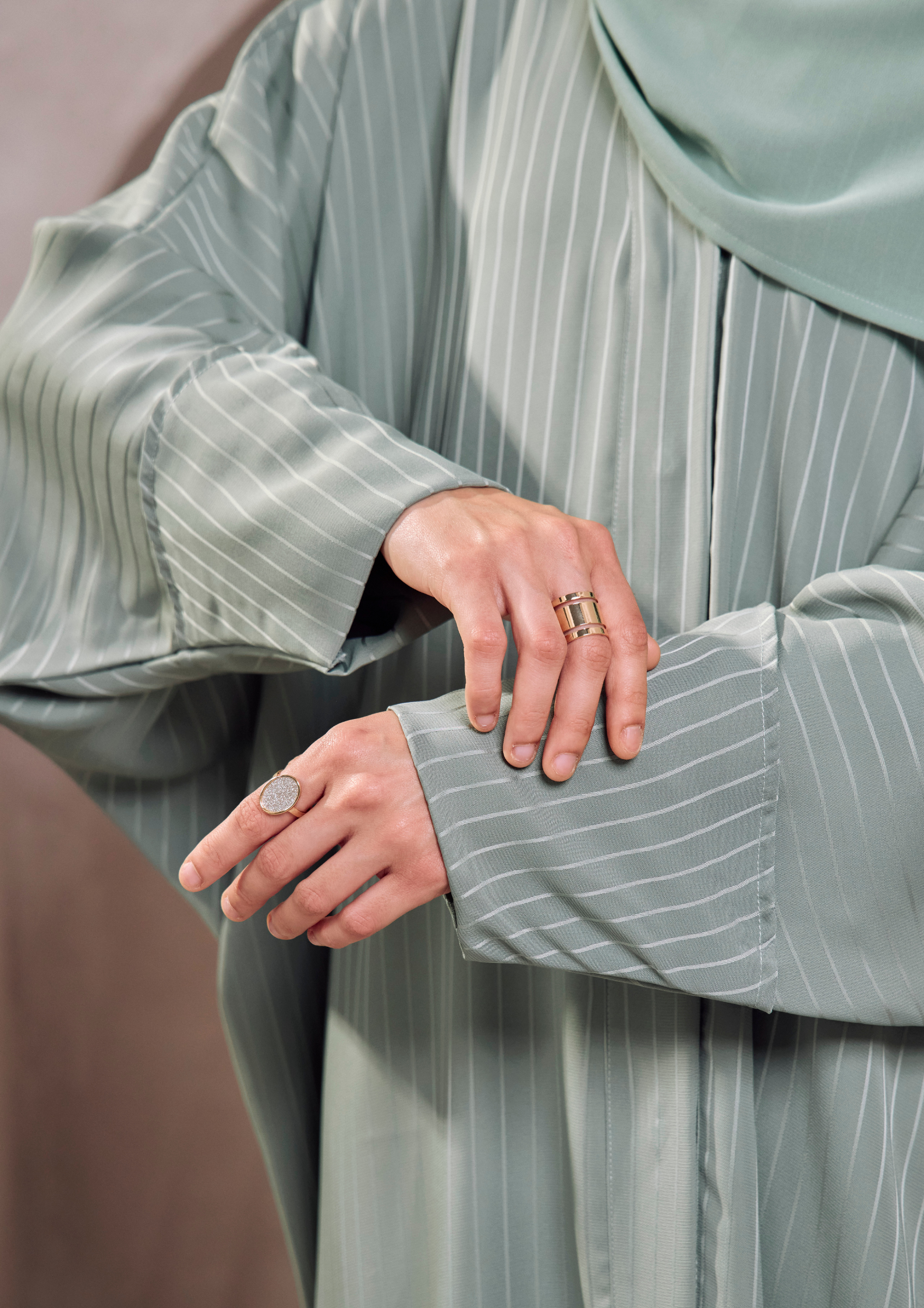 We proudly introduce our striped cardigan abaya, made from soft crepe satin, suitable for a modern yet casual style. Perfect for women of all ages. Its full-length buttons and versatile design allow you to style it in many ways. Wear it over a dress for an elegant touch or pair it with pants and a T-shirt for a chic, effortless look.
