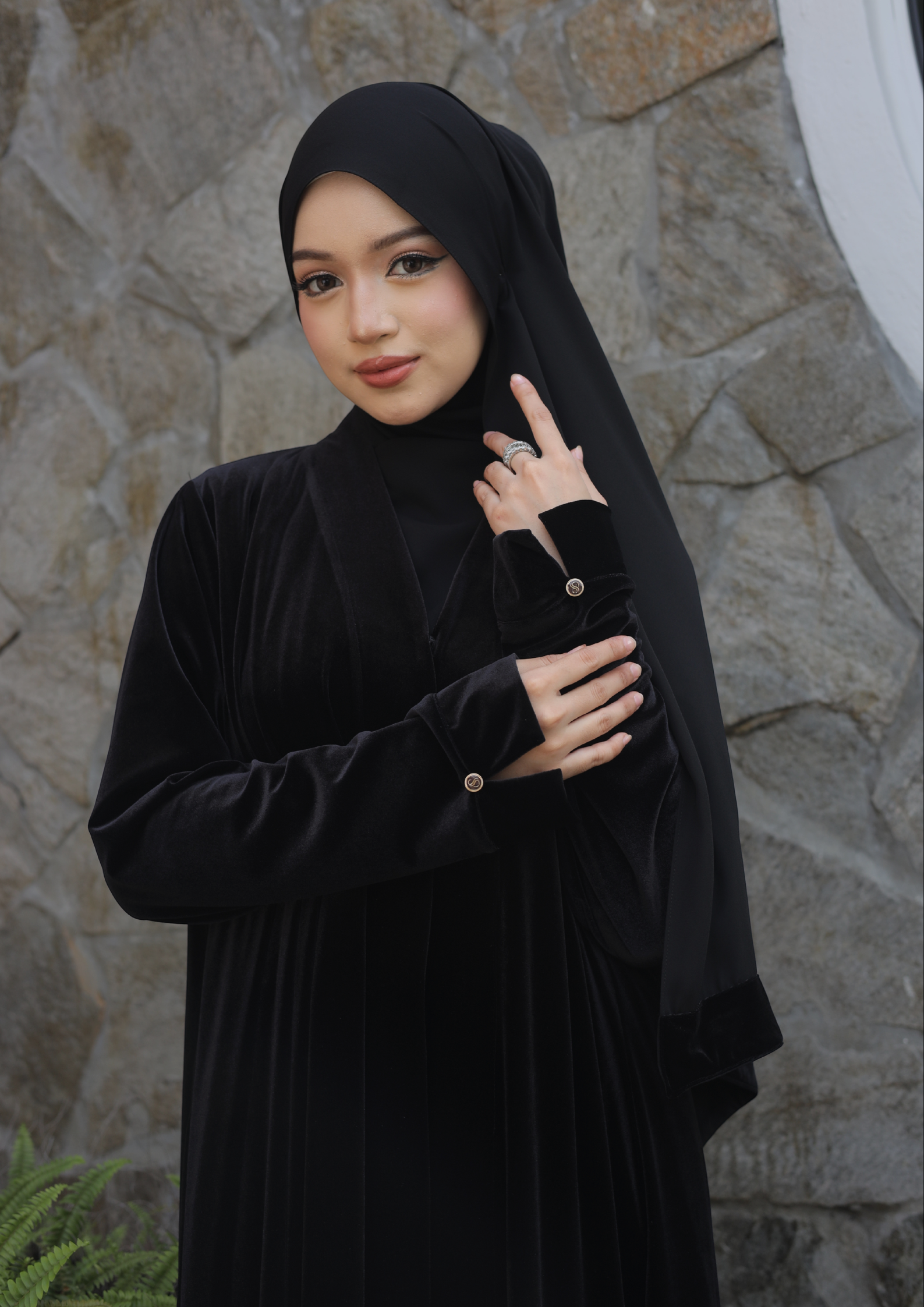 Velora Abaya (open abaya) is crafted from premium soft velvet, offering a smooth, graceful drape with a subtle sheen that exudes timeless elegance. Designed for Hari Raya moments and beyond, its refined silhouette is elevated with thoughtful details that blend comfort and sophistication. Finished with delicate tailoring and a soft flow that moves beautifully, Velora Abaya embodies understated luxury — perfect for celebrating Hari Raya in style, confidence, and grace.